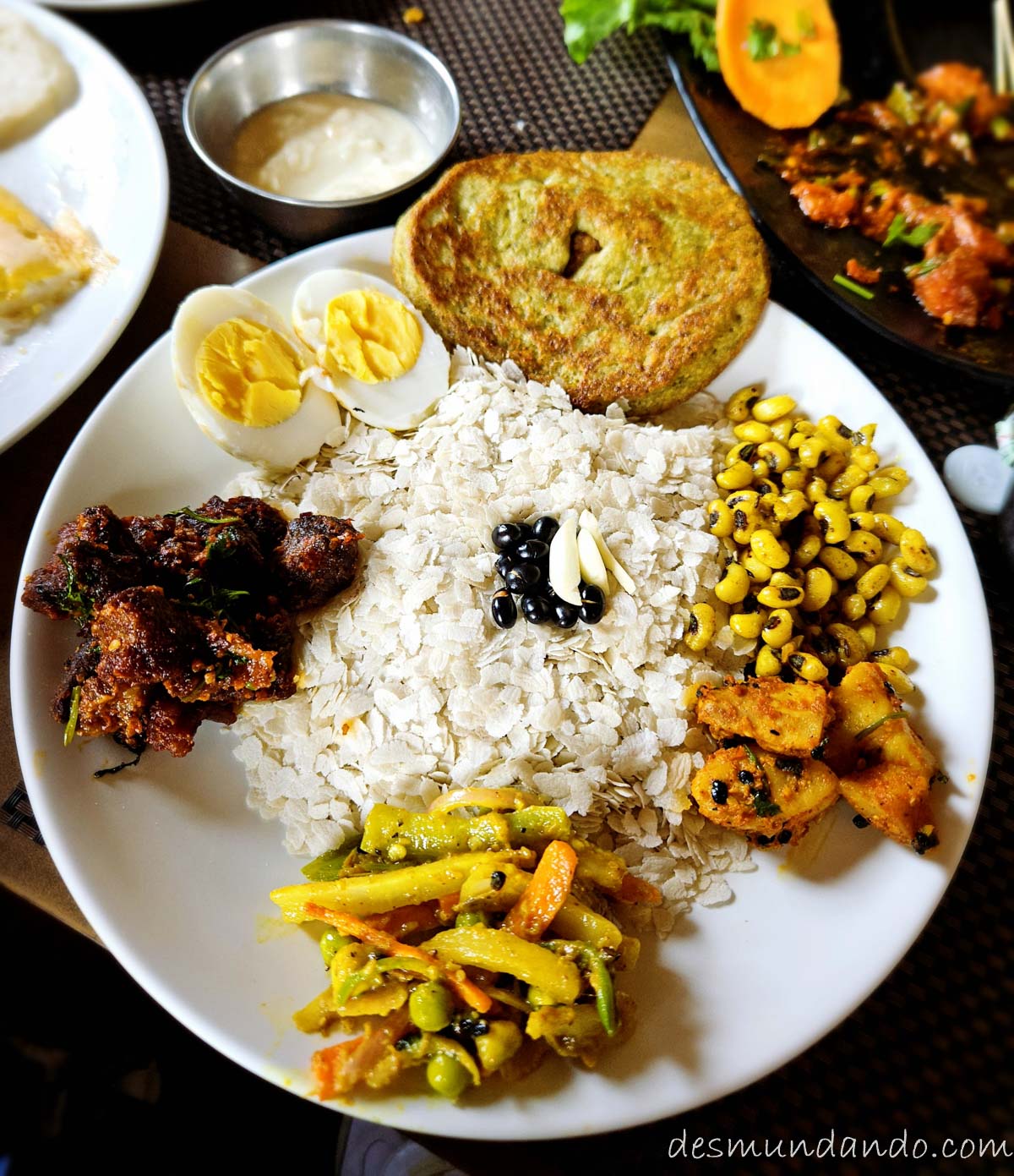 El máximo exponente de esta gastronomía «newar«, que es la etnia que habita el valle de Katmandú. Este tipo de cocina me resultó sorprendente ya que al encontrarse ubicada entre China, India y el Tíbet ha recibido influencia de estos lugares dando lugar a deliciosos platos como el potente Dal Bhat, arroz blanco cocido en el centro (Bhat) acompañado por una sopa de lentejas, verduras y una guarnición de carne, pescado o vegetales a elegir.