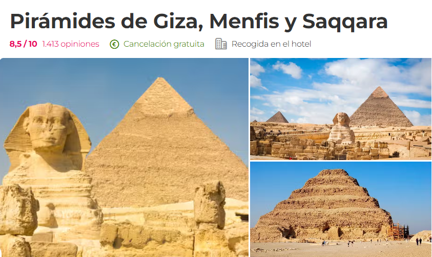 CONSEJO: La mejor manera de visitar Giza es hacerlo contratando previamente una excursión, pues hacerlo por libre puede resultar complicado. Yo lo contraté con Civitatis y la verdad es que todo fue muy bien, además de tener guía en español y tener explicaciones técnicas sobre estos lugares. Te dejo el link a la misma excursión que hice yo por si te interesa.