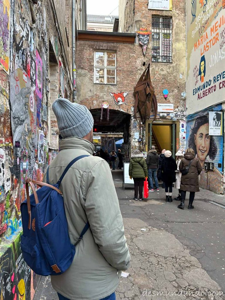 Recorrer el Scheunenviertel (Barrio Judío) no es una visita turística, es un acto de respeto absoluto. Aquí no busques grandes monumentos. Mira al suelo y busca las Stolpersteine, esas pequeñas placas de latón incrustadas en el pavimento delante de las puertas de las casas. Llevan grabado un nombre, una fecha de nacimiento y un destino final: «Auschwitz«, «Treblinka«, «Sobibor«. Terrorífico.